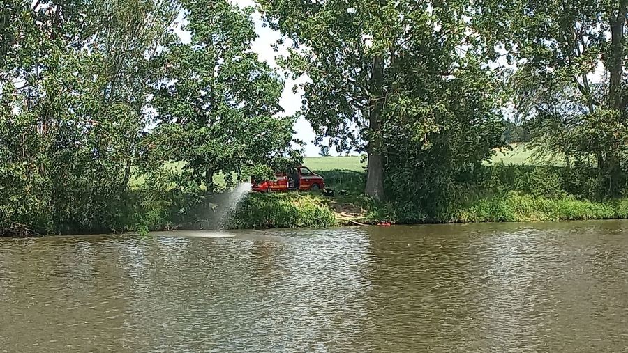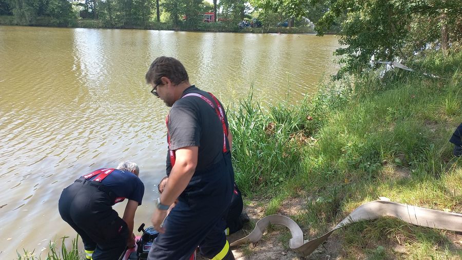 V ranních hodinách vyjela naše jednotka na monitoring Dírenského potoka. Jednotka dostala informaci, že na rybníku Nadýmač v Soběslavi dochází k náhlému a velkému úhynu ryb. Měli jsme tedy za úkol monitorovat dírenský potok od Přehořova až po rybník Nadýmač. Jednotka provedla průzkum na několika částech – Přehořov, Podchlebovský mlýn, chlebovská ČOV, Kamenný most, pískovna Chlebov. Nikde nebyly patrné anomálie v toku, ani znatelný úhyn ryb. Při příjezdu na rybník Nadýmač, kde již byl úhyn patrný, dal velitel zásahu (HZS Soběslav) pokyn naší jednotce k vytvoření čeřícího/okysličovacího místa na severním břehu rybníka pomocí plovoucího čerpadla. Na místě bylo prováděno čeření celkem třemi plovoucími čerpadly (HZS Soběslav, JSDH Přehořov a JSDH Soběslav) a dále pomocí čerpadla města Soběslav určeného na povodně. Voda byla čeřena cca do 14h odpoledne, kdy byla naše jednotka vrácena zpět na základnu.