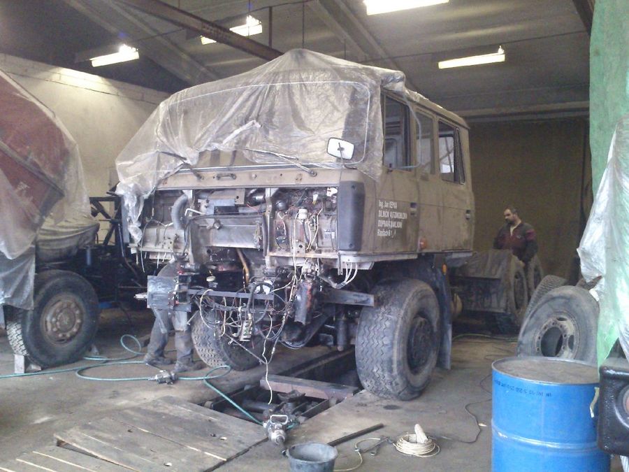Dále také pokračují práce na T-815. O víkendu byly odděleny zadní nápravy, které společně s rámem projdou generální opravou. Prozatím jsou práce prováděny v dílnách p. Pazdery z Chlebova.
