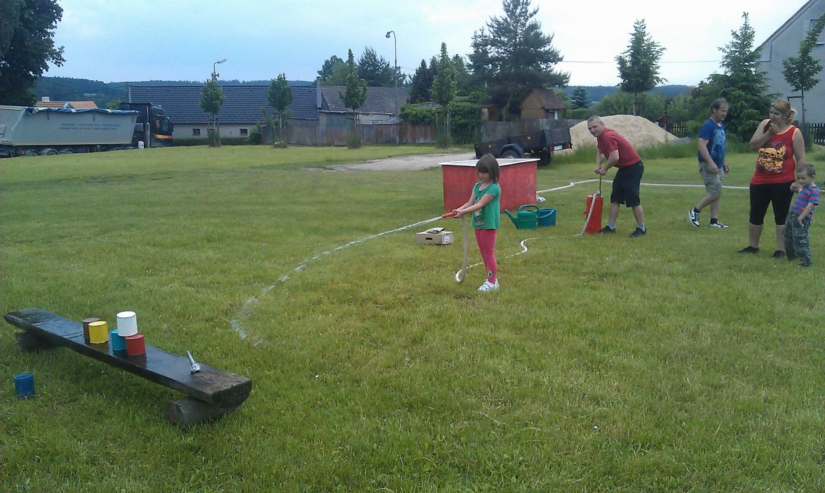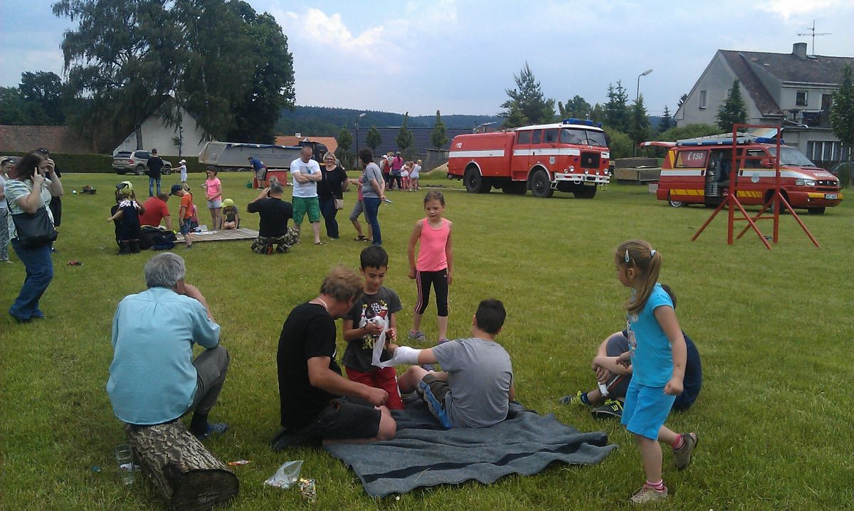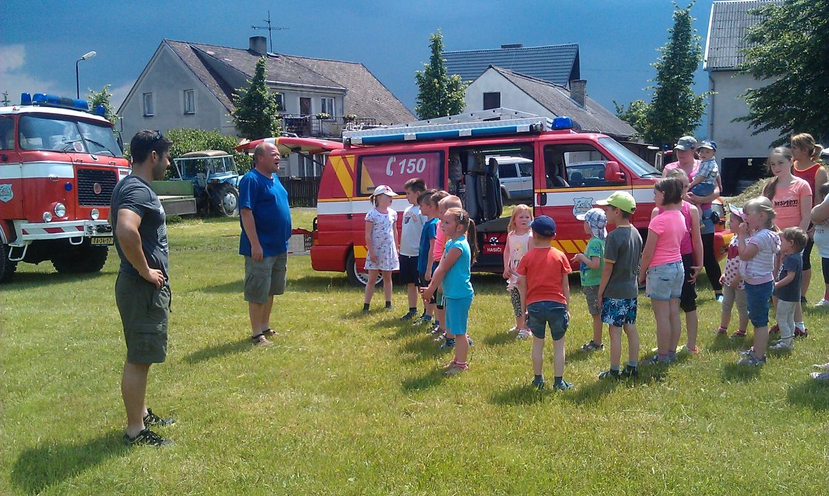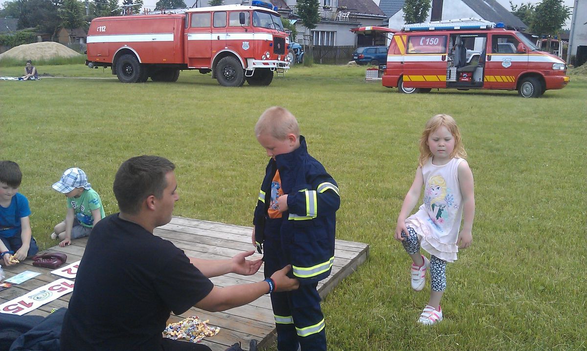 Nedělní odpoledne jsme uspořádali dětem oslavu jejich svátku – dětský den. Tentokrát byla námětem vyloženě hasičská tématika. Všechny děti tak postupně splnily 9 disciplín jako „jízda k zásahu“ na koloběžce, na magnetické tabuli musely obléci všechny zástupce složek IZS, překonat hasičské překážky z dětské hry Plamen. Dále prováděly poslepu průzkum a snažily se poznat předměty po hmatu, stříkaly ze džberové stříkačky, musely zavolat na tísňovou linku a nahlásit zadanou událost, pomocí obvazu omotávaly zraněné končetiny a také ukázaly běh s proudnicí od rozdělovače. Během toho dostávaly po cestě bonbóny. Nakonec dráhy dostalo každé dítko balíček sladkostí, hasičský náramek či ohebnou tužku. Během dne měly k dispozici zdarma limonády a cukrovou vatu od Petra Kratochvílů. Nakonec je čekalo opékání buřtů. Hromadnou a oblíbenou disciplínou o kopu bonbónů bylo přetahování lanem a vrchol bylo sbírání bonbónů pod sprchou z hasičského děla. Pak už nechyběla ani koupačka v hasičské kádi, ve které mimo dětí byli i někteří dospělí. Byl to vydařený den podpořený fajn náladou a pěkným počasím.