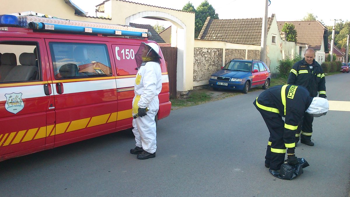 Během zásahu dostala jednotka hlášení o dalším nebezpečném hmyzu, tentokrát ohrožující malé děti uvnitř rodinného domu č.p. 18 v Přehořově.