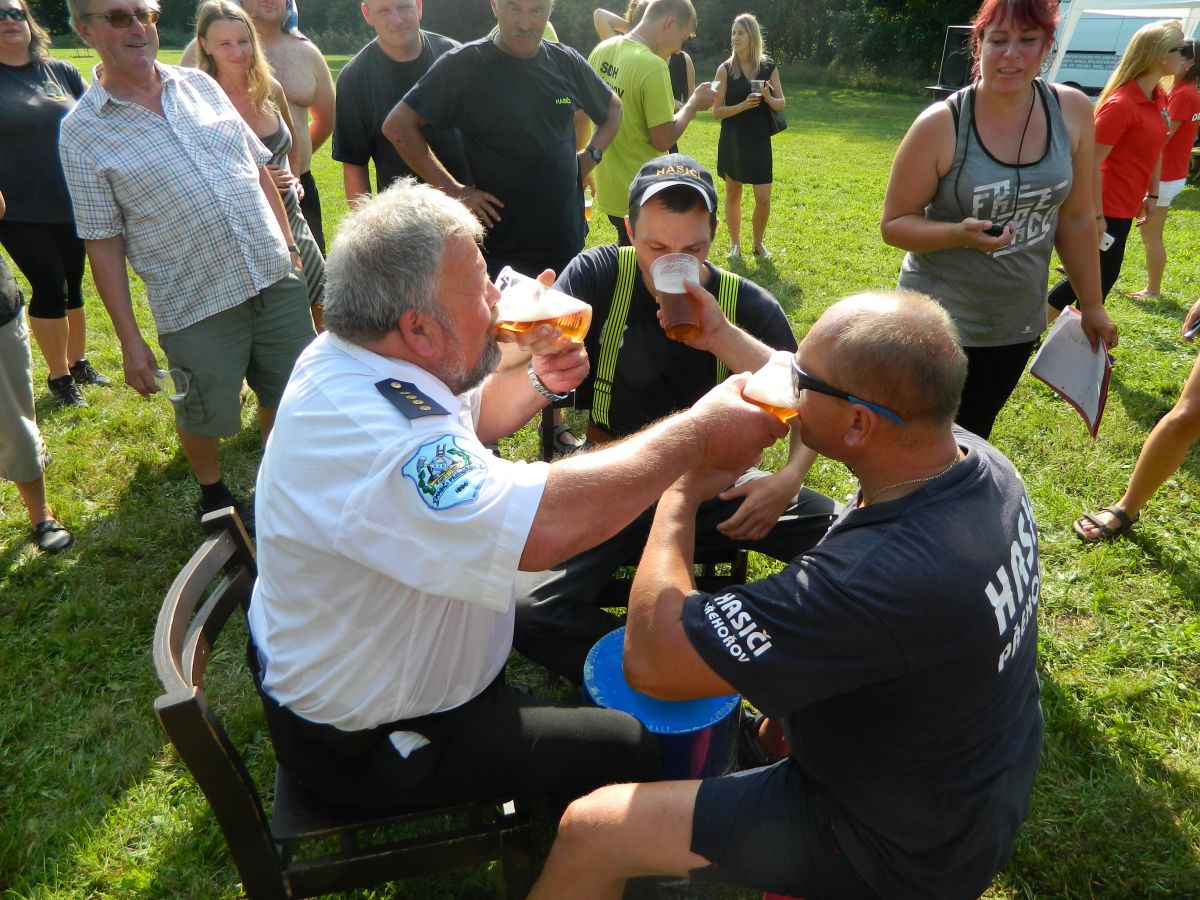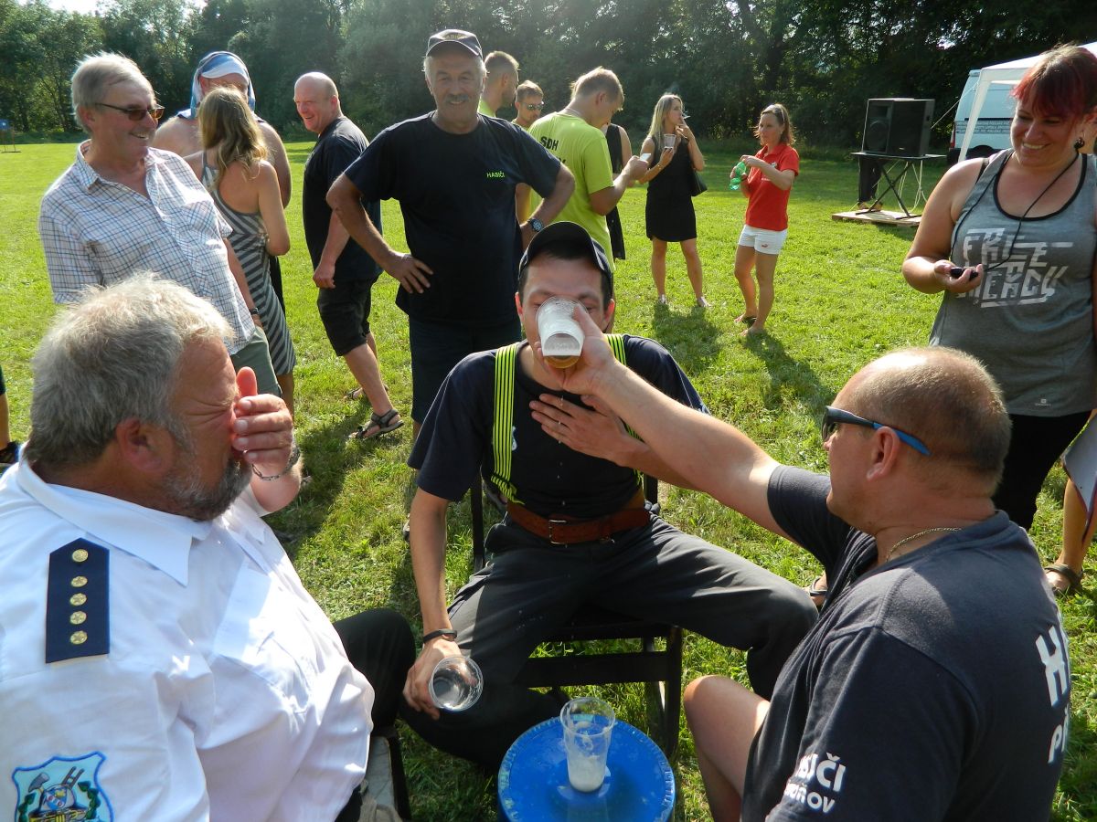 26.8.2017 Soutěž Klenovice, nebezpeční sršni, hasičská fontána