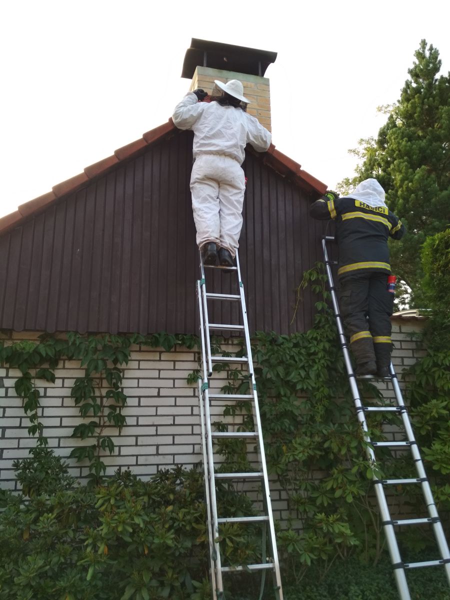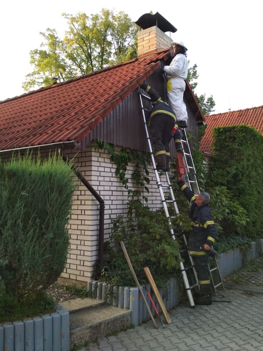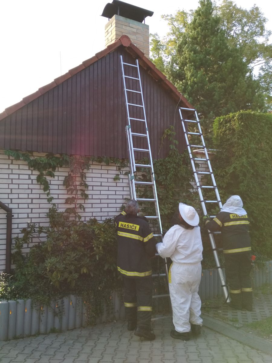 Chvíli po soutěži vyjela naše jednotka do Kvasejovic č.e.502, kde provedla likvidaci nebezpečných sršní ohrožující malé děti.