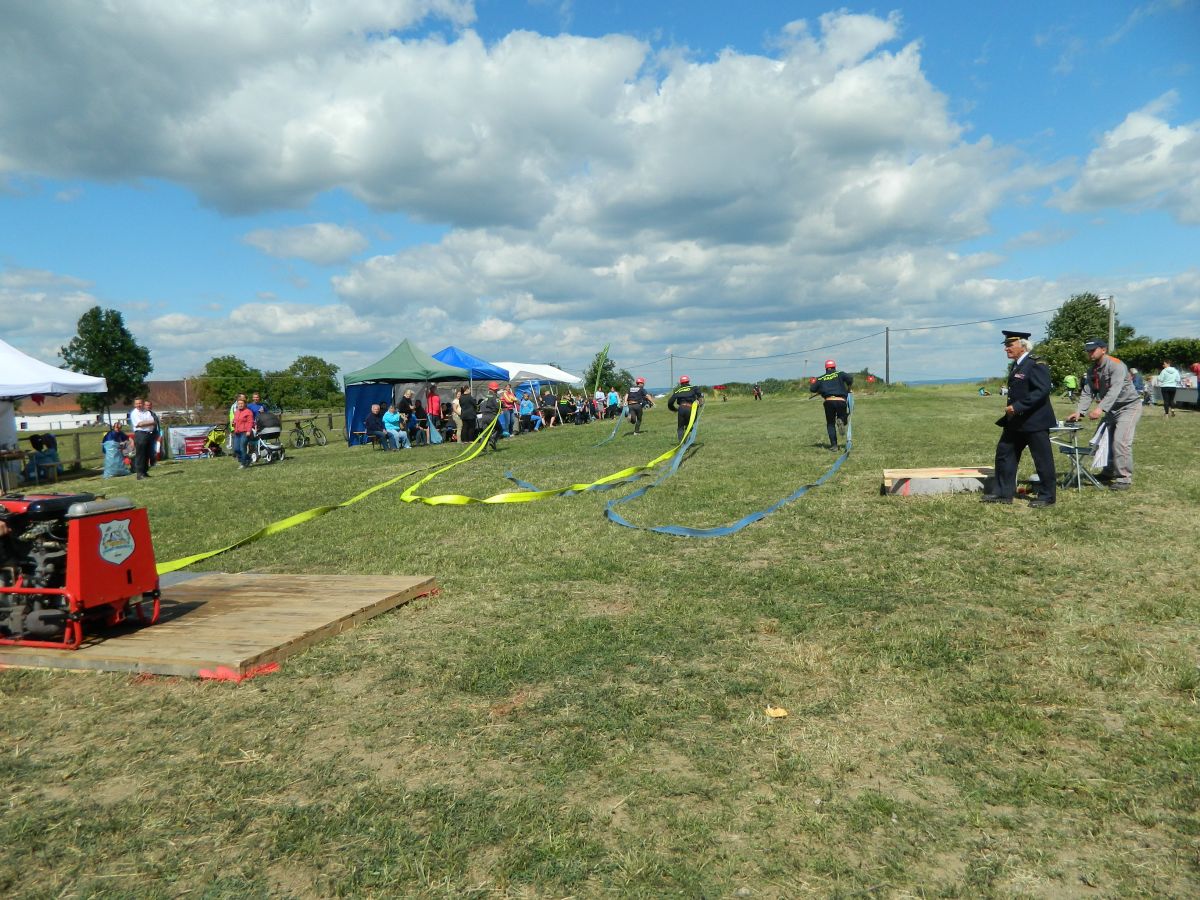 Odpoledne už startovaly v Nedvědicích oslavy 110. Výročí založení SDH Nedvědice, kde se zároveň konala okrsková soutěž spojeného okrsku Soběslav a Tučapy. Letos jako nepostupová soutěž bez běhu na 100m překážek s požárním útokem na 2B. Sem jsme se sjela všechna naše družstva. První běželo naše A družstvo. Při rozběhu jsme však zjistili, že v kádi je pouze ¾ vody. Museli jsme tak sát a čas se zastavil na 26,80s. Rozhodčí uznal, že to je chyba a nabídl nám pokus opakovat. My ho přijali. Druhý rozběh vypadal ještě rychleji. Bohužel se ale voda zastavila u rozdělovače - došlo k rozlomení palce rozdělovače u motoru PS 12. Tím jsme nenastříkali a pokus byl bohužel hodnocen jako N. Podobně pokus nedokončila ještě dvě družstva, takže jsme z 12 družstev skončili na posledním děleném 10. místě (5. místo v okrsku). Stříkačku jsme poté provizorně opravili a na start se postavilo naše ženské družstvo doplněné o výpomoc z Komárova a Dráchova. Stálou pomocí je také naše domácí Romana Bubníková, která však je členkou SDH Dvorce. Komárovská proudařka pokus nezvládla ideálně a po komplikacích se čas zastavil až na 47,98s. Jedno družstvo mělo pokus neplatným, takže z toho bylo 4. místo. (3. místo v okrsku). Družstvo B už svůj pokus zvládlo lépe a dlouho s časem 24,39s drželo třetí pozici v celkovém hodnocení. Nakonec se ale posunulo na 4. místo (2. místo v okrsku). Staro-novou premiéru si užil na proudu B týmu Jan Šimek. V týmu rozhodčích byl mimo jiné i náš Jarda Mendlů. Po ukončení závodu jsme zase dojeli pro naše děti a náročný den jsme zakončili až v podvečer.