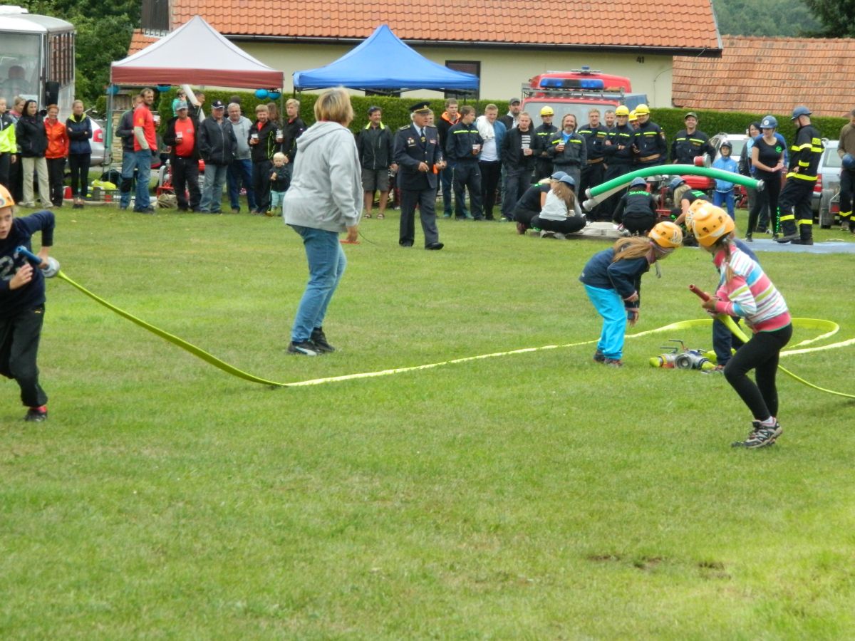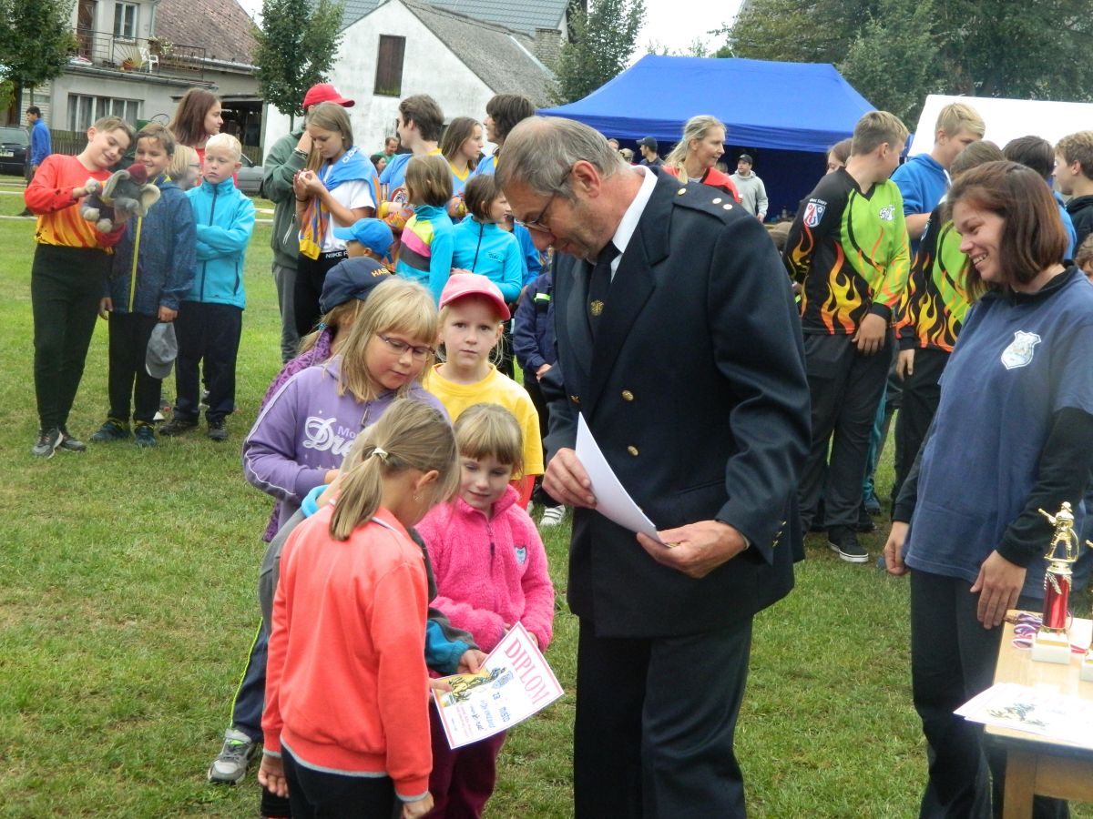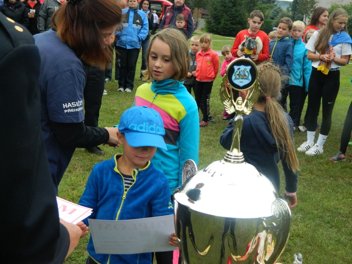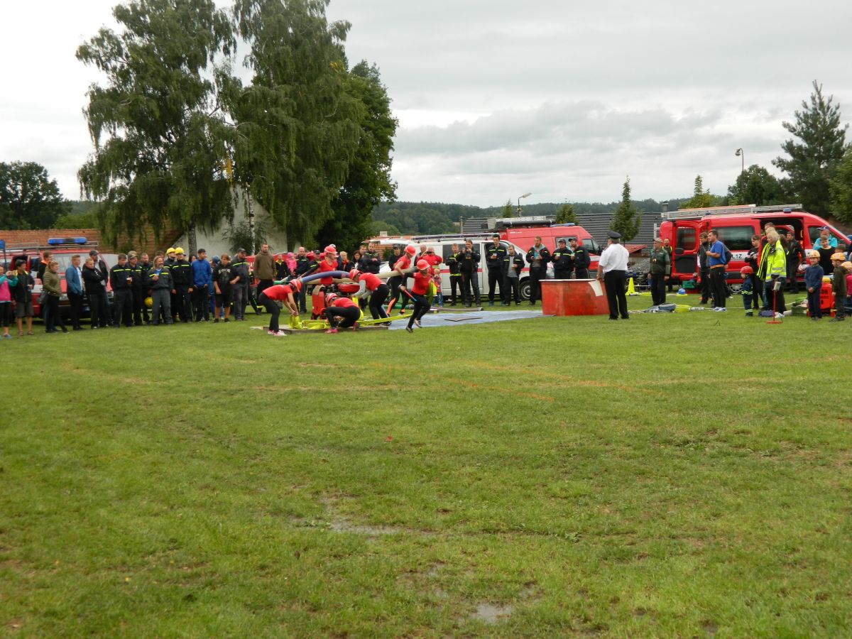 Po roce se na domácím hřišti konal již 9. ročník soutěže O pohár SDH Přehořov aneb „přehořovský kopeček“. Chladné a deštivé počasí předchozích dní se trochu zlepšilo a tak se naštěstí naše obavy o zrušení soutěže nenaplnily. Díky nízkým teplotám několik družstev svou účast odhlásilo, ale i tak se k nám sjelo celkem 36 družstev. Startovalo se opět na dvou základnách. Na jedné dospělý a na druhé děti. Dětských družstev se zúčastnilo patnáct. Pro nás to byla premiéra hlavně v kategorii mladší, kde poprvé běžely soutěž naše děti. Ty nakonec za velkého potlesku diváků zaběhly čas 34,12s a umístily se na 6. místě ze sedmi týmů. Pro ně to byla první velká zkušenost na takovéto soutěži. V kategorii starších se našemu družstvu podařilo zaběhnout dosavadní nejlepší čas s naší stříkačkou PS12 a to 16:00s a byly blízko vítězství. Tento čas o pouhé dvě setiny však předčilo družstvo Slapy „A“ a časem 15,98s vyhrálo. Našim starším dětem zůstalo z domácí soutěže nádherné 2. Místo (z celkem šesti družstev) a potvrdili svou dosavadní kvalitu. Za nimi časem 17,48s získaly bronz Kvasejovice. Poslední závod v dětské kategorii to byl pro naši Báru Kozlů, která se tak s dětským družstvem rozloučila výtečně – na domácí půdě a ještě ziskem medaile. V tuto chvíli byla soutěž přerušena a dětem byly předány ceny a medaile. Mezi dospělými se také dařilo. Družstvo B dosáhlo časem 22,36s na nádherné 2. místo. Družstvo A pak časem 23,07s na místo čtvrté. Mezi domácí se na třetí příčku časem 22,57s dostali také partnerské Kvasejovice. Mužských družstev bylo celkem čtrnáct. Za obě dospělá družstva si svou premiéru mezi dospělými odbyl Vláďa Petržilka – oba útoky zvládl na proudu výborně. Prvenství si odvezli tentokrát hasiči z Dráchova díky času 20,91s. Získali tak mimo putovní pohár také sud piva. Naše ženy tento závod neběžely. Zde zvítězilo ze sedmi přihlášených družstvo Libíň časem 23,22s. V kategorii PS8, kde se běželo na dětské dráze na dětské hadice ženy i muži dohromady, jsme domácí družstvo neměli. Z celkem čtyř přihlášených se nejlépe dařilo družstvu z Kvasejovic, kteří vyhráli s časem 18,64s. Všechny ostatní výsledky jsou přiloženy ve fotogalerii. Po vyhlášení výsledků následovala pivní štafeta se třemi pivy. V mužích zvítězil Lžín (pouze ve dvou) časem 14,32s. V ženách pak Dráchov časem 16,83s. Na dodržování pravidel letos dohlížel jako hlavní rozhodčí p. Šustr, na koších náš starosta J. Mendl, u dětí veselský S. Kaisler a na čárách stříkání náš O. Šimek. Obě časomíry byly letos poprvé elektronické – u dospělých SDH Želeč a u dětí HZS Tábor. Devátý přehořovský kopeček v pořadí tak dopadl i přes chladné počasí super a dle ohlasů družstev se zde divákům i sportovcům opět líbilo, a zato jsme moc rádi.