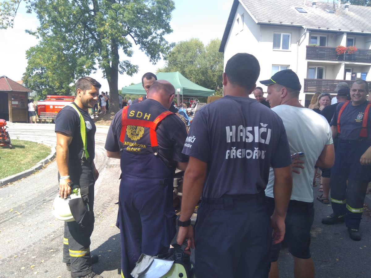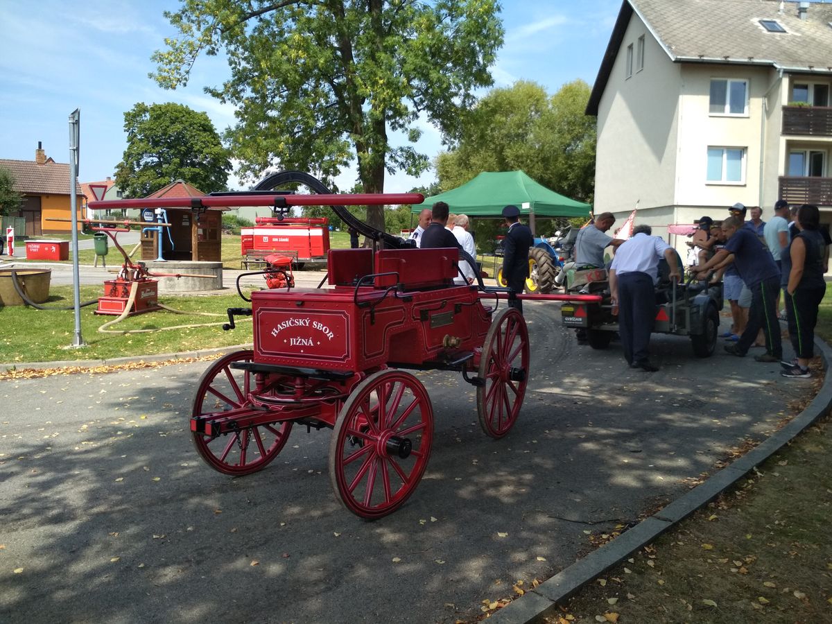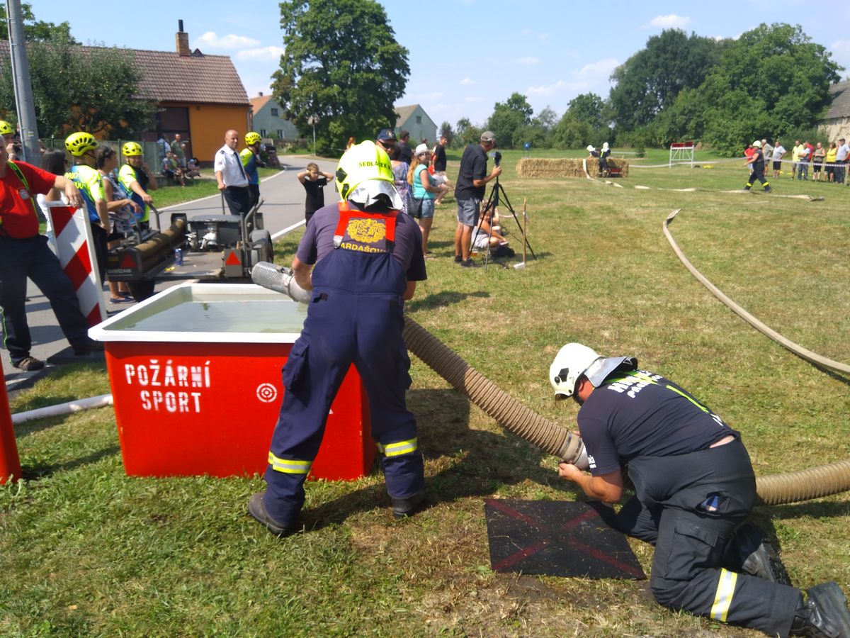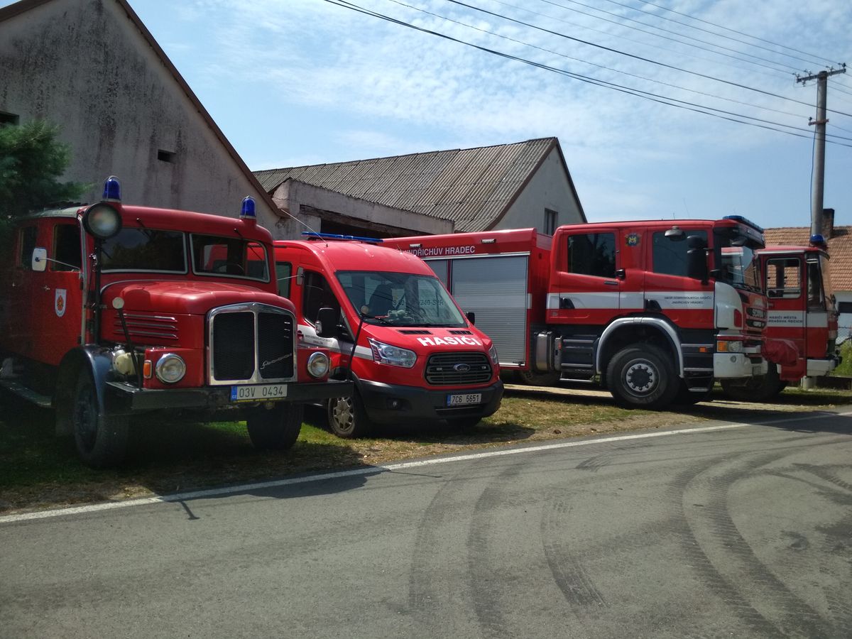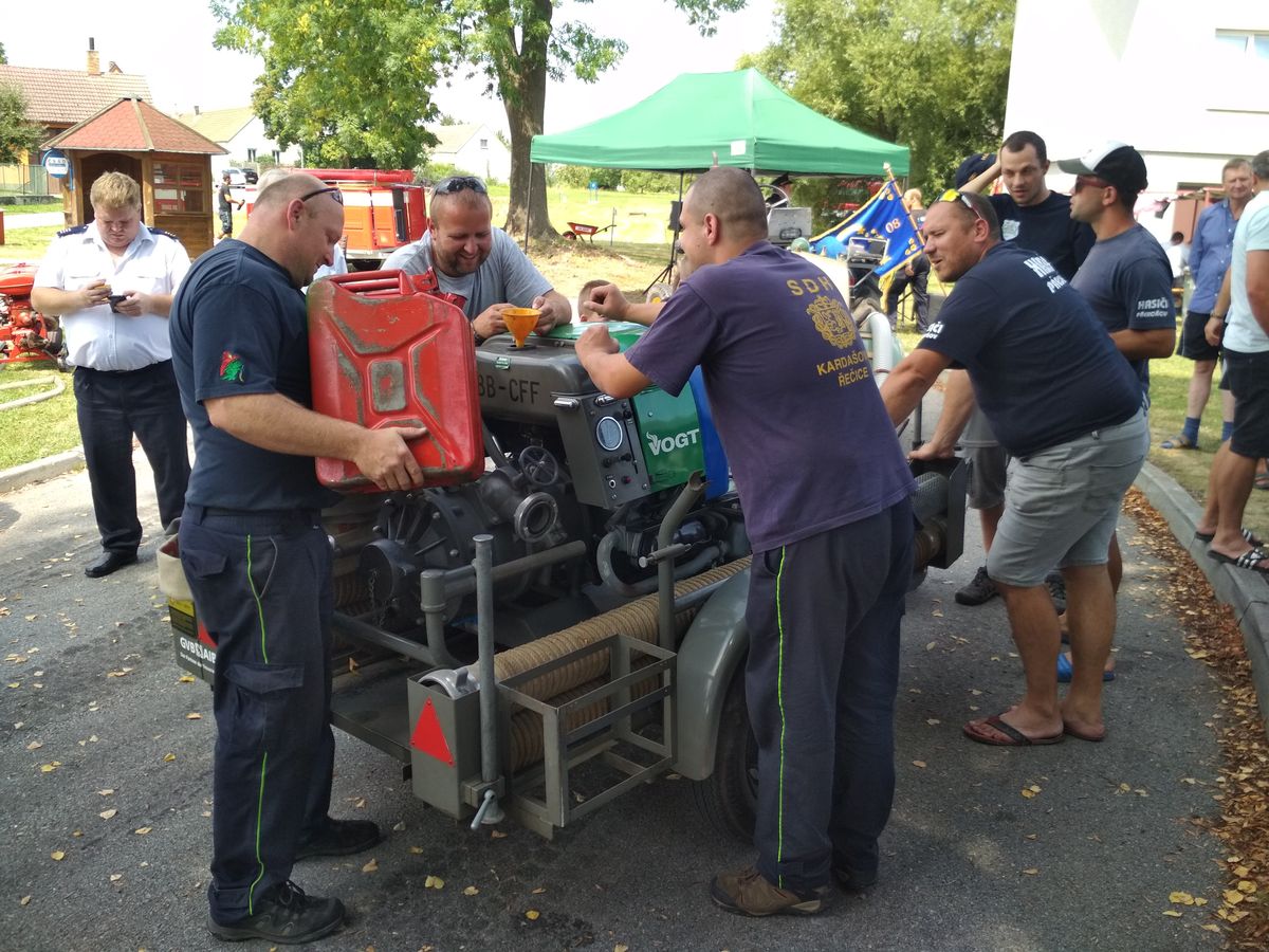 V sobotu jsme zavítali do blízkého Záhoří. Tady hasiči oslavili 110 let od jejich založení. Na nově opravené návsi tak byla k vidění hasičská technika všeho druhu a stáří, včetně naší CAS 32 T-815. Součástí byla také soutěž v netradičním útoku. S útočnými proudy se muselo přes balíky slámy a hadice C se od základny vezly na kolečku. My jsme byli čtyři, ale protože kamarádi z K. Řečice byli tři, tak jsme se spojili a běželi netradičně v zásahovém oblečení a se stříkačkou z padesátých let, kterou kardašští dostali od svých švýcarských kolegů. Při pokusu se utrhly u hadic celkem tři zuby, takže jsme nakonec pokus nedokončili, ale zábava nejen pro nás to byla veliká.