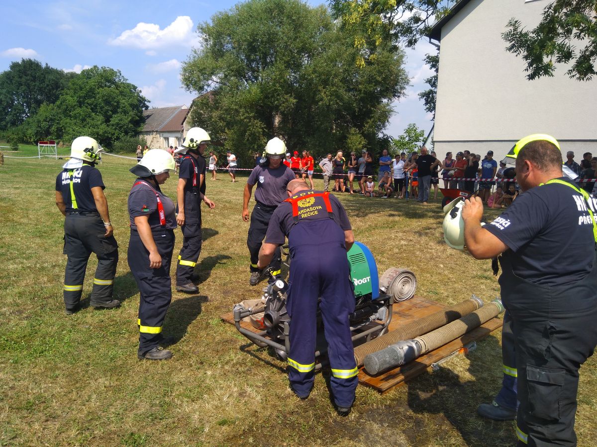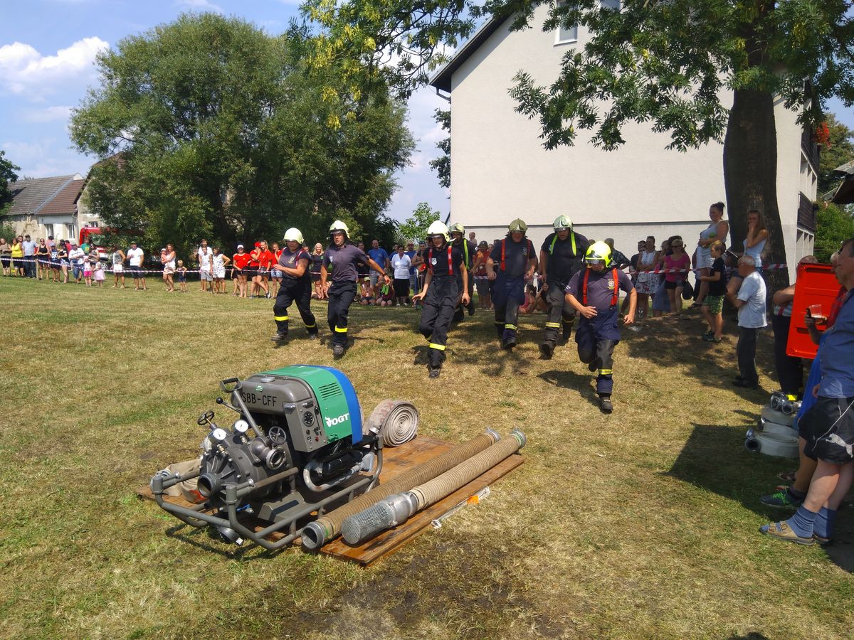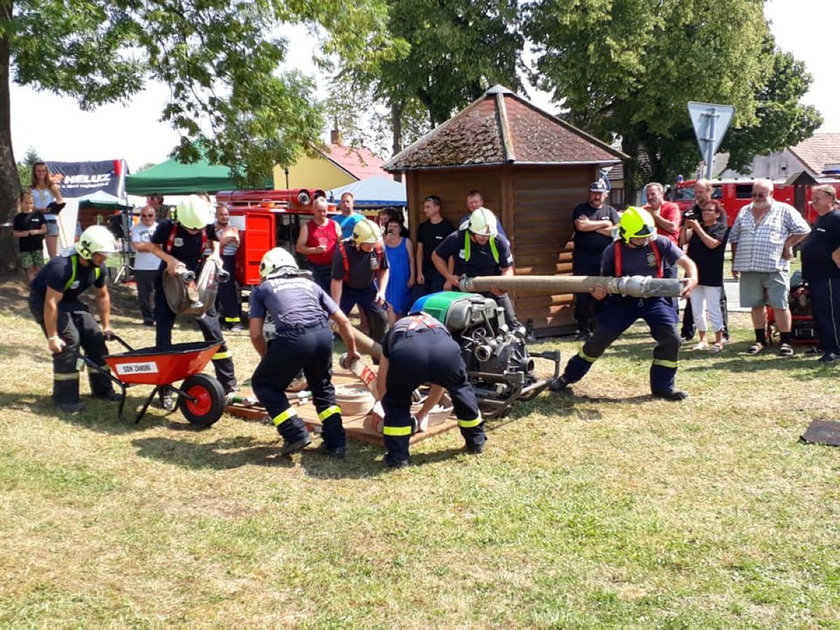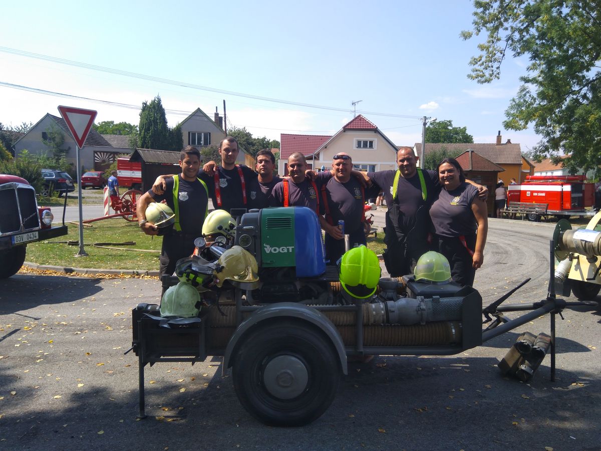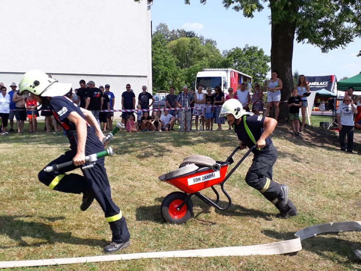 V sobotu jsme zavítali do blízkého Záhoří. Tady hasiči oslavili 110 let od jejich založení. Na nově opravené návsi tak byla k vidění hasičská technika všeho druhu a stáří, včetně naší CAS 32 T-815. Součástí byla také soutěž v netradičním útoku. S útočnými proudy se muselo přes balíky slámy a hadice C se od základny vezly na kolečku. My jsme byli čtyři, ale protože kamarádi z K. Řečice byli tři, tak jsme se spojili a běželi netradičně v zásahovém oblečení a se stříkačkou z padesátých let, kterou kardašští dostali od svých švýcarských kolegů. Při pokusu se utrhly u hadic celkem tři zuby, takže jsme nakonec pokus nedokončili, ale zábava nejen pro nás to byla veliká.