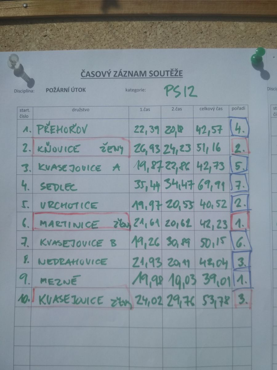 O víkendu jsme tentokrát vyrazili do Kvasejovic na Chobot-cup. Na soutěž jsme složili jen mužské družstvo. To zaběhlo dvoukolově na 2B časy 22,39s a 20,18s na stříkačku zapůjčenou od místních hasičů. Součet časů nás poté zařadil na výsledné 4. místo ze sedmi zúčastněných. Také jsme zaběhli útok s místní PS8, tam se ale nepodařilo nabrat dobře vodu a bylo z toho 55,15s a poslední místo. Poté jsme se ještě do podvečera zdrželi a popovídali s kamarády z Kvasejovic.