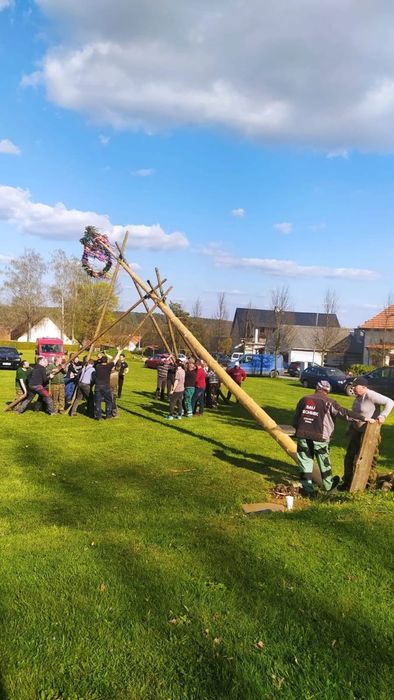 Jaro je spojeno nejen u nás se stavbou Máje a pálením čarodějnic. Hybnou silou v tomto je už po léta náš sbor. Letos jsme se rozhodli, že po loňské úspěšné akci, postavíme Máj ručně opět i letos. Den předem, jsme si tak částečně vše připravili a pokračovali v neděli. Ráno jsme na rožeň napíchli 70 kg prasátko a začali vše připravovat. Na 17 h už bylo vše hotové a tak jsme se pustili do stavění, které opět přilákalo hodně lidí. Letos měřila Máj 20,4 m a společně ji zvedlo na místo okolo třiceti chlapů. Úplně po másle to nešlo, ale podařilo se. Ostatní silákům poděkovali potleskem. Dětem udělala velkou radost cukrová vata v podání Petra Kratochvíla. Na 20 h se dle plánu zapálila vatra s čarodějnicí a pak už se křepčilo za hudby, nápojů a pečeného prasete až do nočních hodin. Pár odvážlivců, jako každý rok, zůstalo u Máje až do rána a jak jinak…. Opět se podařilo ji uhlídat. Jen letos žádný věnec navíc nepřibyl :o)