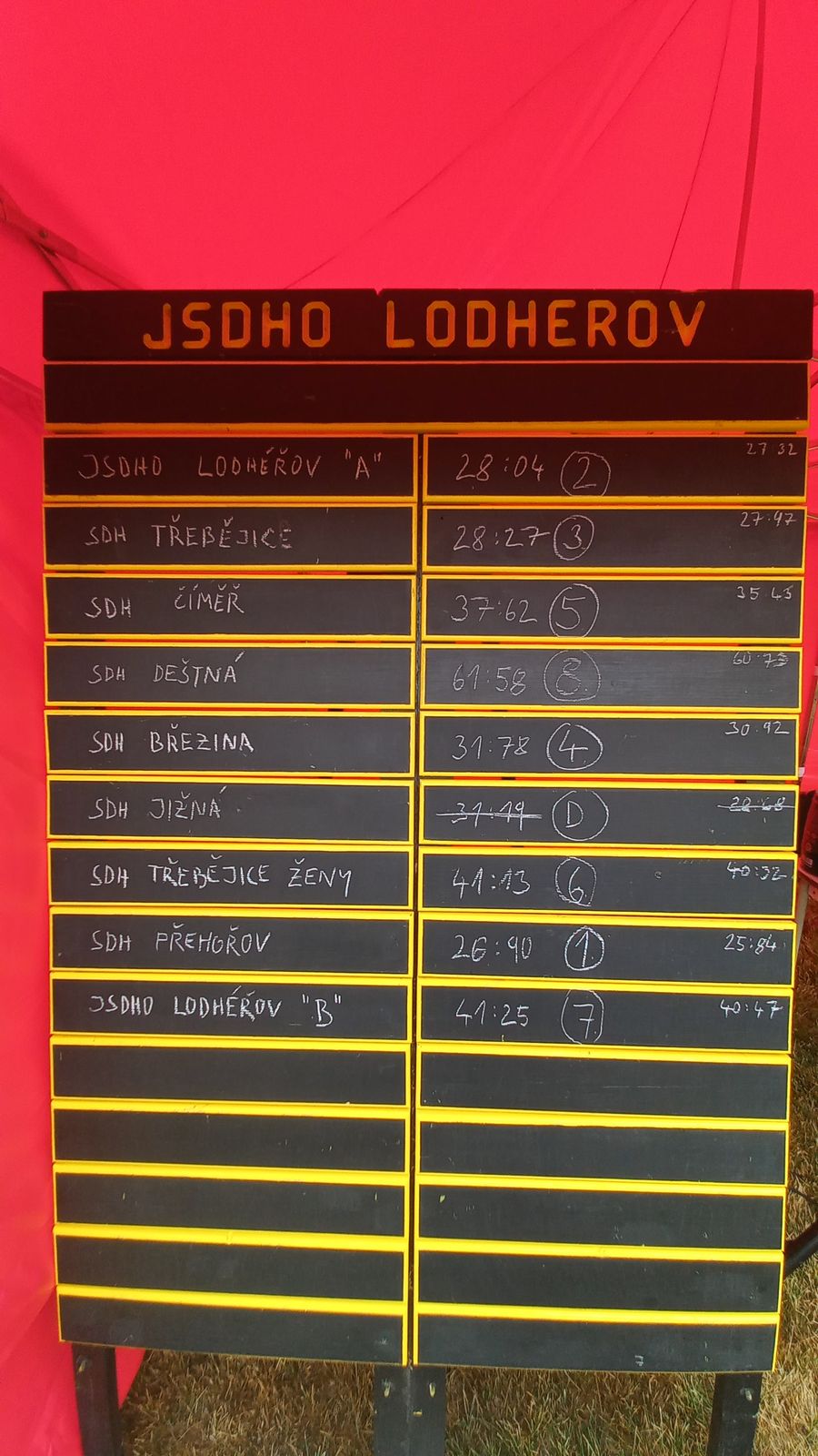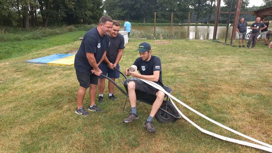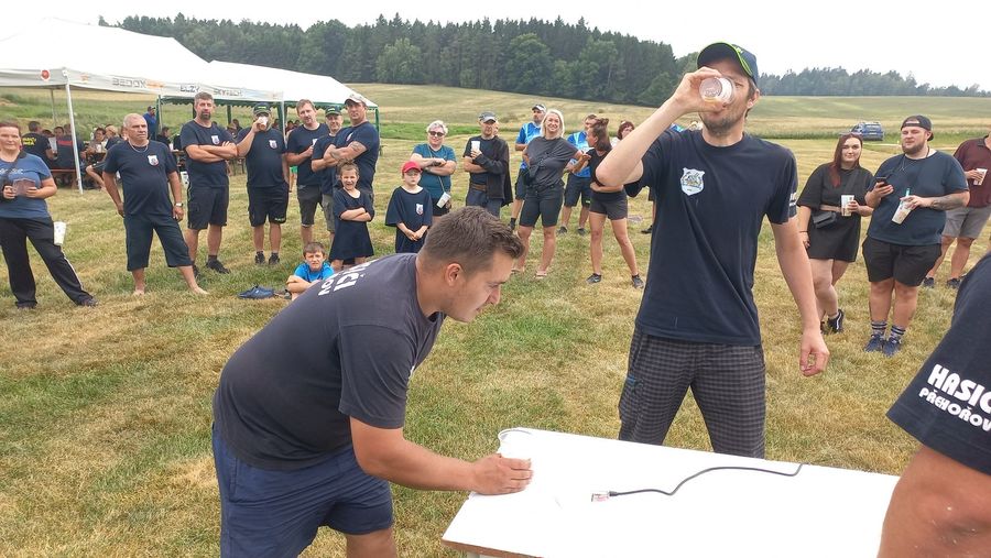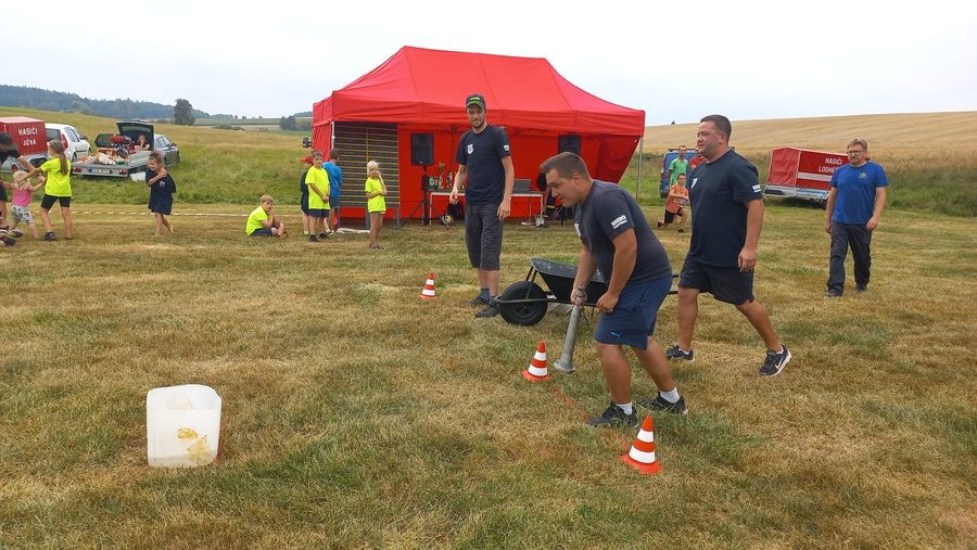 Po cca 3 letech jsme vyrazili na soutěž do Lodhéřova. Na krásném místě u rybníka za vsí se sjelo celkem 9 týmů. My jsme šli na řadu jako předposlední. Tady se na soutěži muselo zřetelně sát, hadice byly v kotoučích na základně a všechny spoje se musely dělat mimo ní. Na konci pokusu se na časomíře rozsvítil čas 26,90s. Nikdo jiný se pod hranici 27s nedostal a tak jsme první místo odvezli my, stejně jako v roce 2021. Nakonec jsme se ještě zúčastnili dovednostní soutěže, kde běželo celkem 18 tříčlenných týmů. Tady jsme se na bednu neprobojovali, ale užili si ji náramně.
