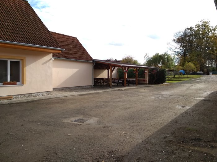 Úvod > Hasiči > JSDH > Hasičská zbrojnice > Součástí zbrojnice je i dvůr s pergolou a posezením